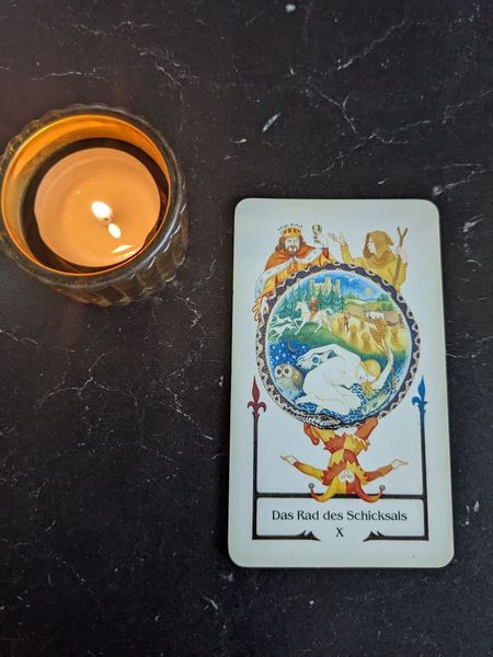 Das Glücksrad ist ein schöpferisches Lebenssymbol. Die Karte Glück oder das Glücksrad ist das beste Symbol, um Vorhaben wie Glück zu verstärken, aber auch Überfluss und Wohlstand im Leben zu nähern. Es ist ein Archetyp, der es ihrem Leben gestatten kann, eine glücksbringendere Richtung einzuschlagen. Durch Meditation und kreative Visualisierung unterstützt das Glücksrad ihre Affirmation und das Streben nach Reifen auf allen Ebenen.