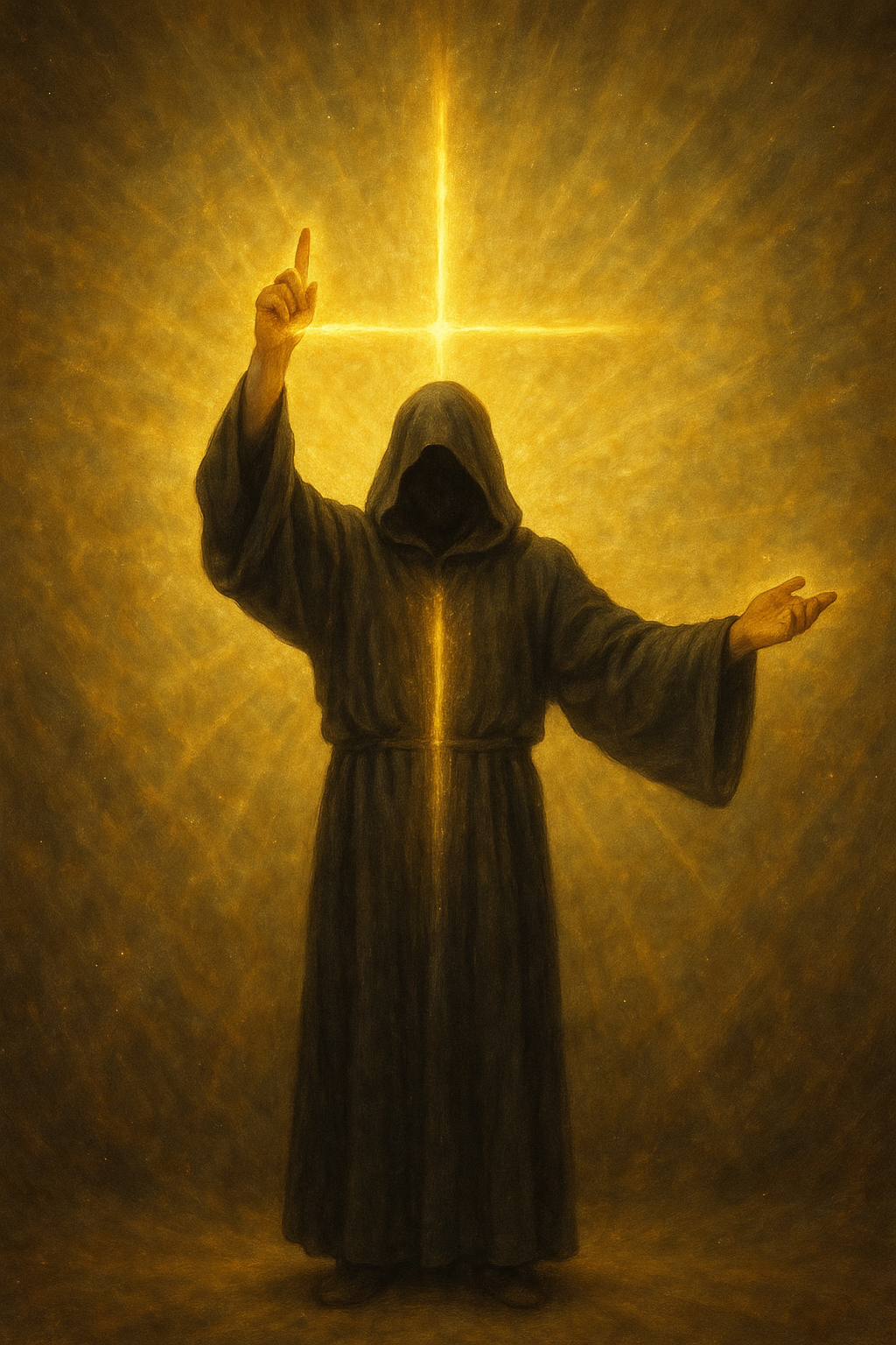 Bevor sich die flammenden Pentagramme in den Raum brennen, beginnt der rituelle Akt mit dem kabbalistischen Kreuz, der Ausrichtung meines Mikrokosmos auf das Licht des Göttlichen. Es ist weit mehr als eine Eröffnungsgeste. Es ist ein Weg der Rückverbindung, eine Achse, durch die das Licht von Kether bis in Malkuth fließt. Durch den eigenen Körper.