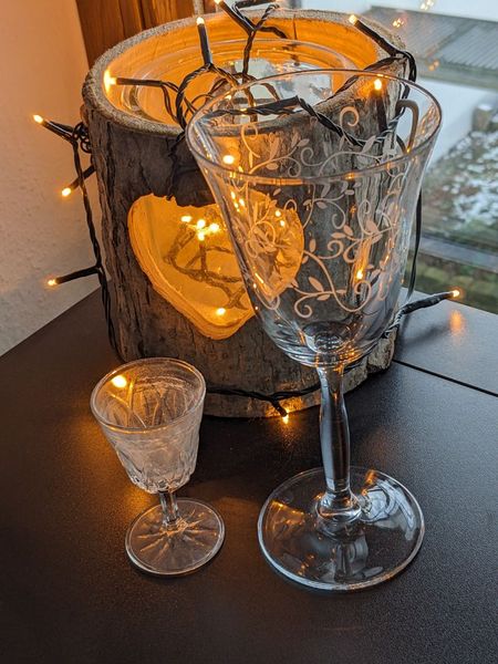 Ich habe zwei Kelche. Meinen kleinen, den ich zusammen mit Meersalz und Wasser zur Reinigung verwende und meinen groรŸen, den ich als Geschenk bekommen habe. Wenn es an der Zeit ist, werde ich den groรŸen tauschen, da ich die Bindung zu dem Menschen gerne abschwรคchen wรผrde. Bisher sieht das Universum das allerdings anders (was sich nicht nur am Kelch zeigt).
