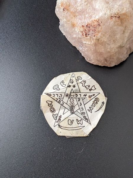 Manchmal lege ich ein selbst (ab)gezeichnetes Tetagrammaton nach Eliphas Lรฉvi in den Kreis. Es ist fast 20 Jahre alt und sieht entsprechend aus. Zitat Lรฉvi zum Tetragrammaton (ich glaube aus Dogme et rituel de la haute magie): „The pentagram expresses the domination of the spirit over the elements and it is through this sign that the demons of the air, the spirits of fire, the specters of water are chained. and the ghosts of the earth“.)