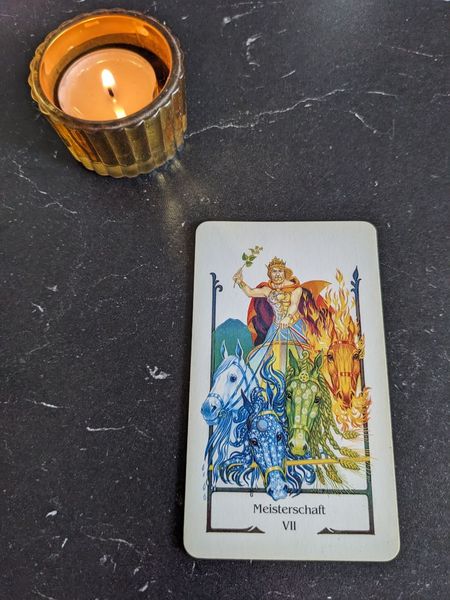 Der Narr hat nun die Meisterschaft รผber die Elemente, Zugang zu seinem Unterbewusstsein, Einblicke in die Mysterien, er hat seine daraus entstehende Kraft erkannt und ordnet sie dennoch in das groรe Ganze ein und unter, wurde dadurch erneut zum Eingeweihten und schaffte es seine verschiedenen Anteile zu vereinen und seine Kraft / seinen Einfluss weiter auszubauen. Er kennt nun die notwendigen Schritte und Gedanken sowie die einhergehenden Prรผfungen die notwendig sind um weitere Wege zu beschreiten. Er ist bereit im Einklang mit all dem Erfahrenen die Elemente zu lenken, die Welt zu gestalten und seinen Weg weiter zu gehen. Der entscheidende Punkt ist die Ausgleichung vor der Manifestation, weil sonst die Manifestation das Gegenteil ebenfalls manifestiert und damit die Manifestation nicht mehr so wirksam ist. Je mehr dies auf den verschiedenen Ebenen bedacht und eingeflochten wurde, um so „stabiler“ lรคsst sich etwas in die Dualitรคt unserer erlebten Welt bringen, ohne durch ihr – zwangslรคufig erzeugtes Gegenstรผck – abgeschwรคcht zu werden. Der Wagen hat die Meisterschaft in diesem Punkt erreicht und kann punktgenau wirken.