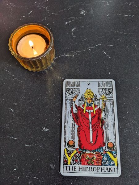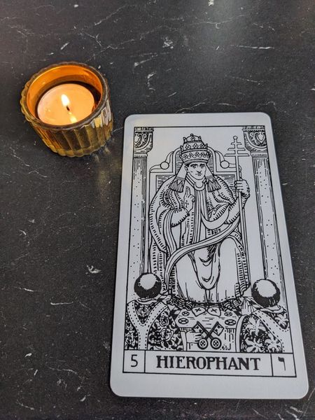 Fรผr Papus liegt der Hierophant an 5ter Stelle und ist He zugewiesen. Er sieht in ihm die Idee des Lebens und der Belebung, des Seins, der Vereinigung. Er bezeichnet ihn als in den Isismythen eingeweihte. Die Hohepriesterin wird durch den Hierophanten ergรคnzt. Er beschreibt das universelle Leben als negativen Teil des belebten Fluidums. Ihre Anziehung bringt die Liebe(nden 6) hervor.